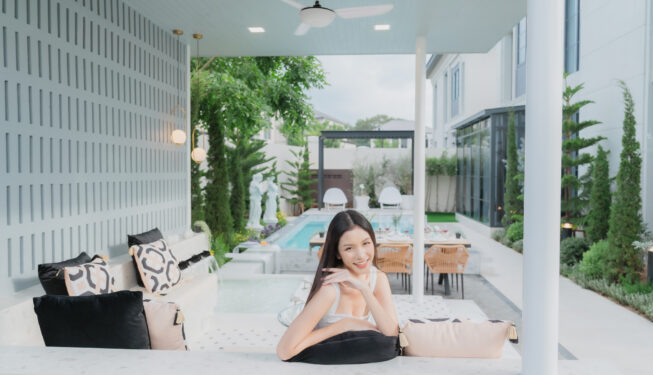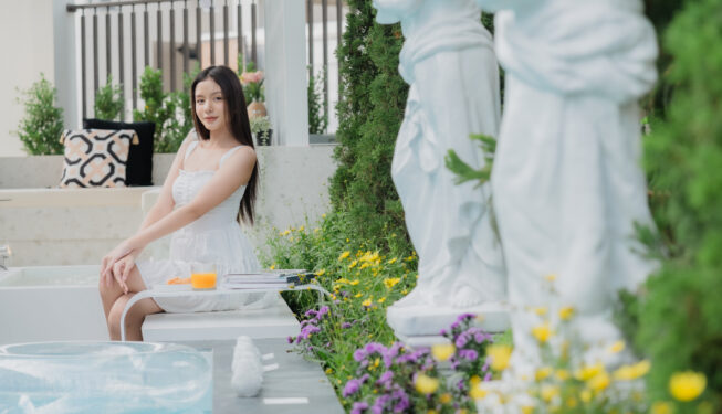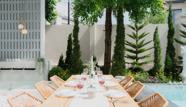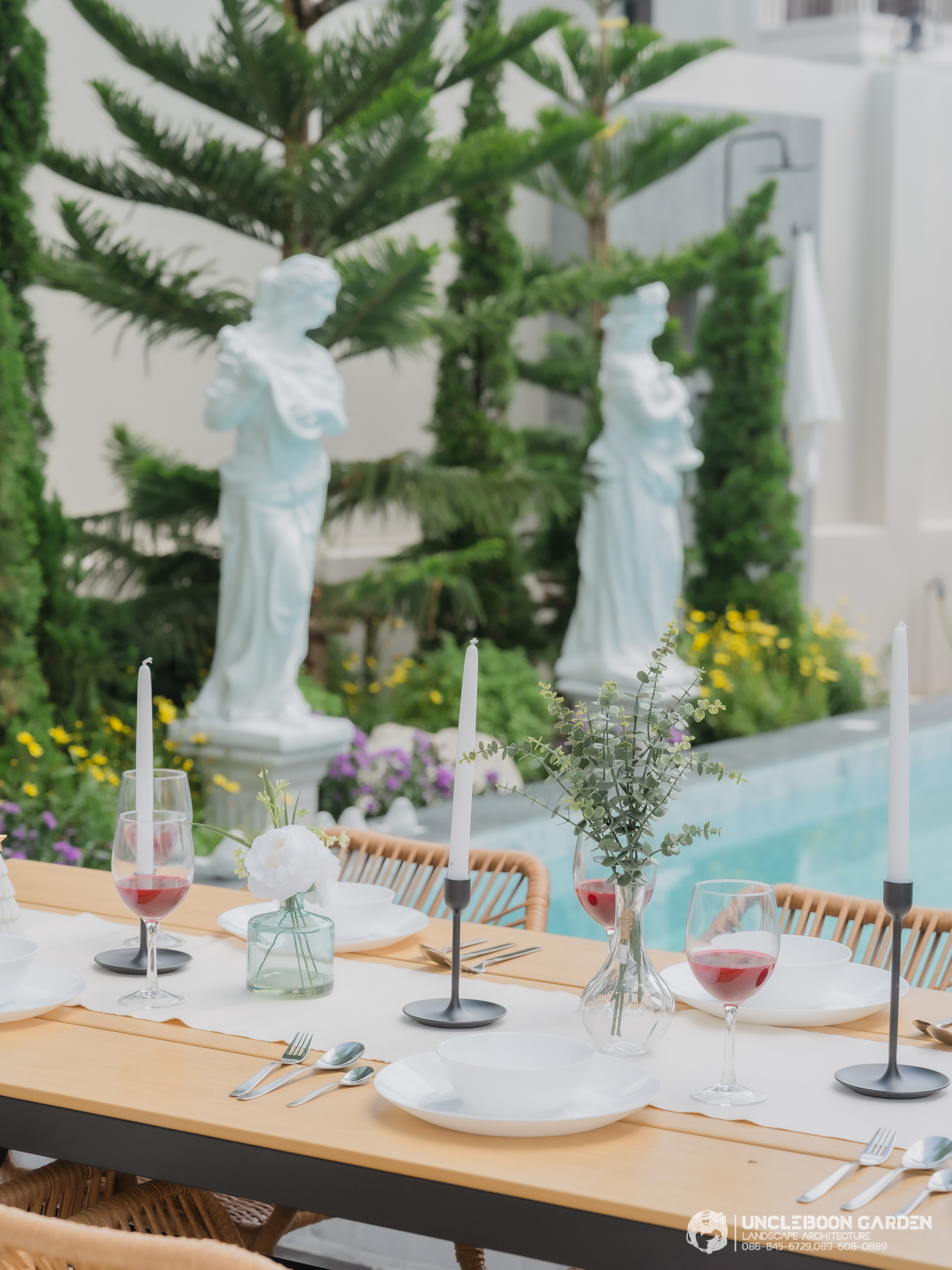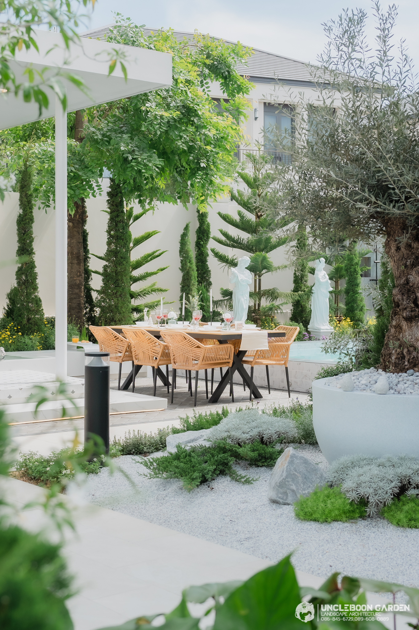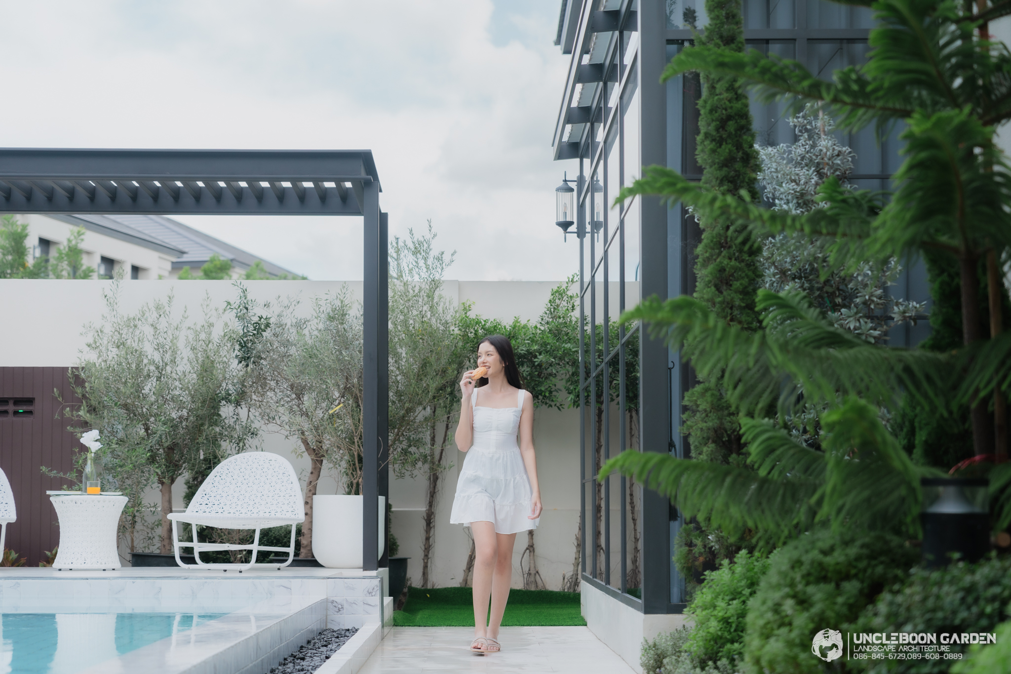 สวนแห่งนี้ไม่ได้เป็นเพียงพื้นที่สีเขียว แต่เป็น therapeutic space ที่ช่วยสร้างความผ่อนคลายและเชื่อมความสัมพันธ์ในครอบครัว บรรยากาศเน้นการผสมผสาน biophilic design principles เข้ากับความทันสมัยและกลิ่นอายของ English Garden