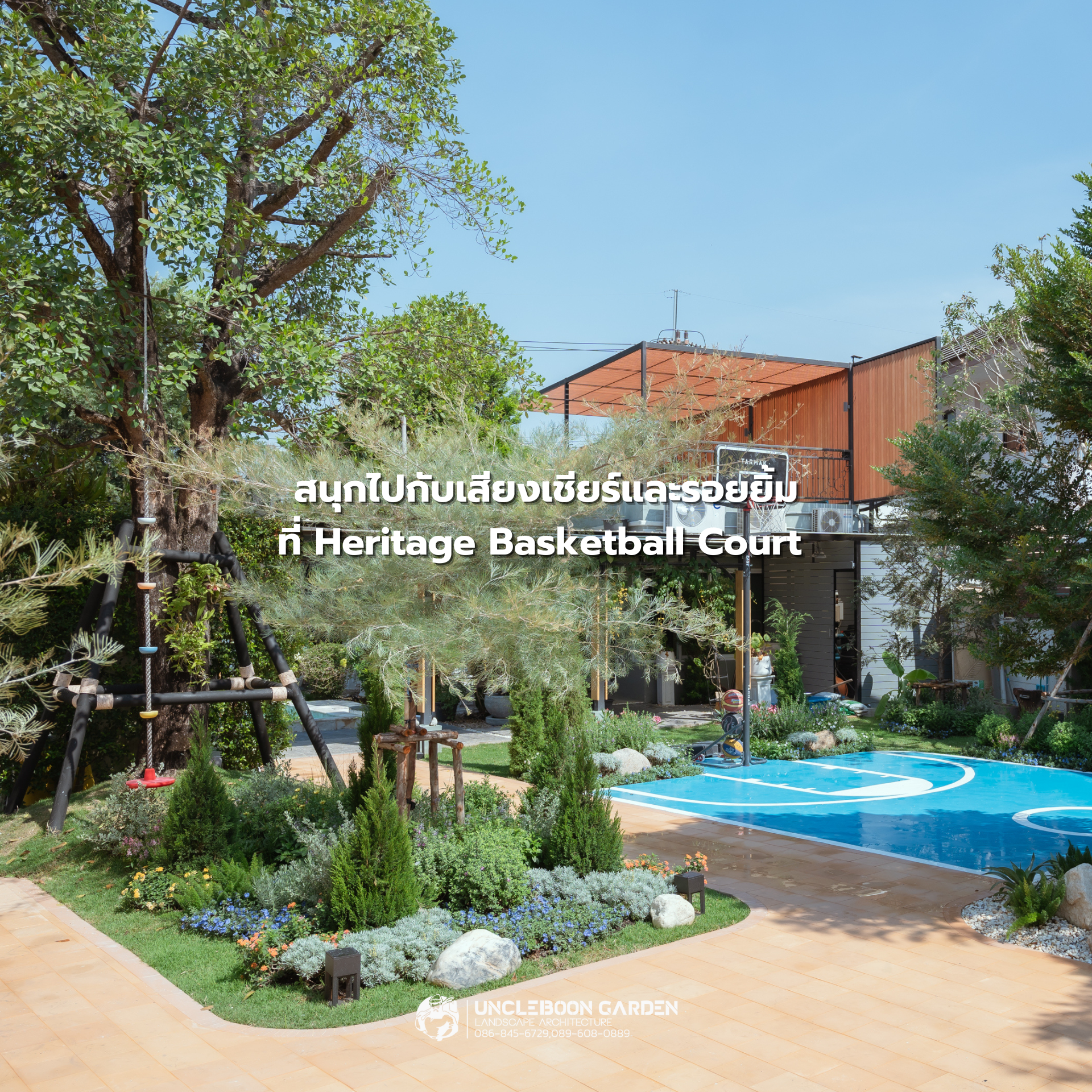 Heritage Basketball Court – สนามบาสเกตบอลที่ออกแบบให้สอดรับกับองค์ประกอบของสวน โดยใช้ classic European design elements