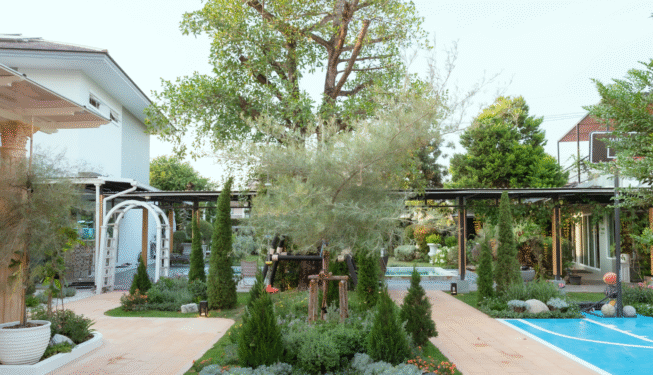 Lush Mediterranean Flora – คัดสรรพันธุ์ไม้ที่เหมาะกับสภาพภูมิอากาศ เช่น cypress trees, lavender, climbing roses และ olive trees เพื่อเพิ่มเสน่ห์และกลิ่นอายของอิตาลี