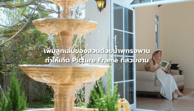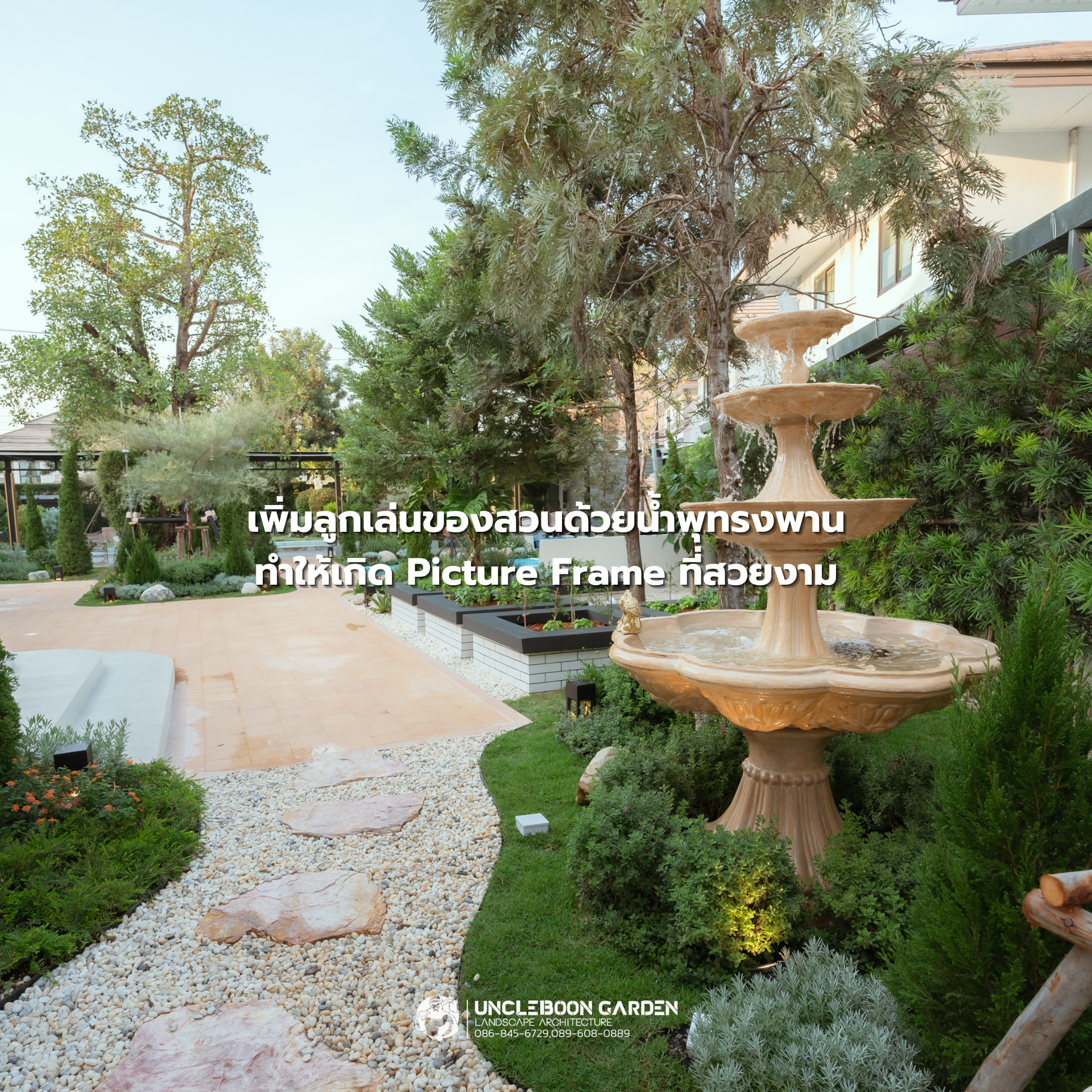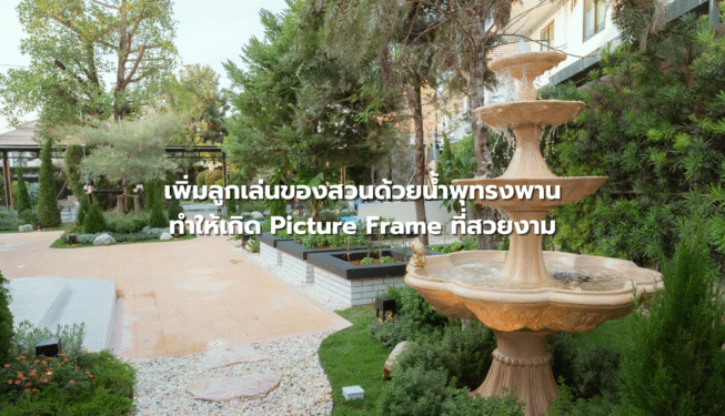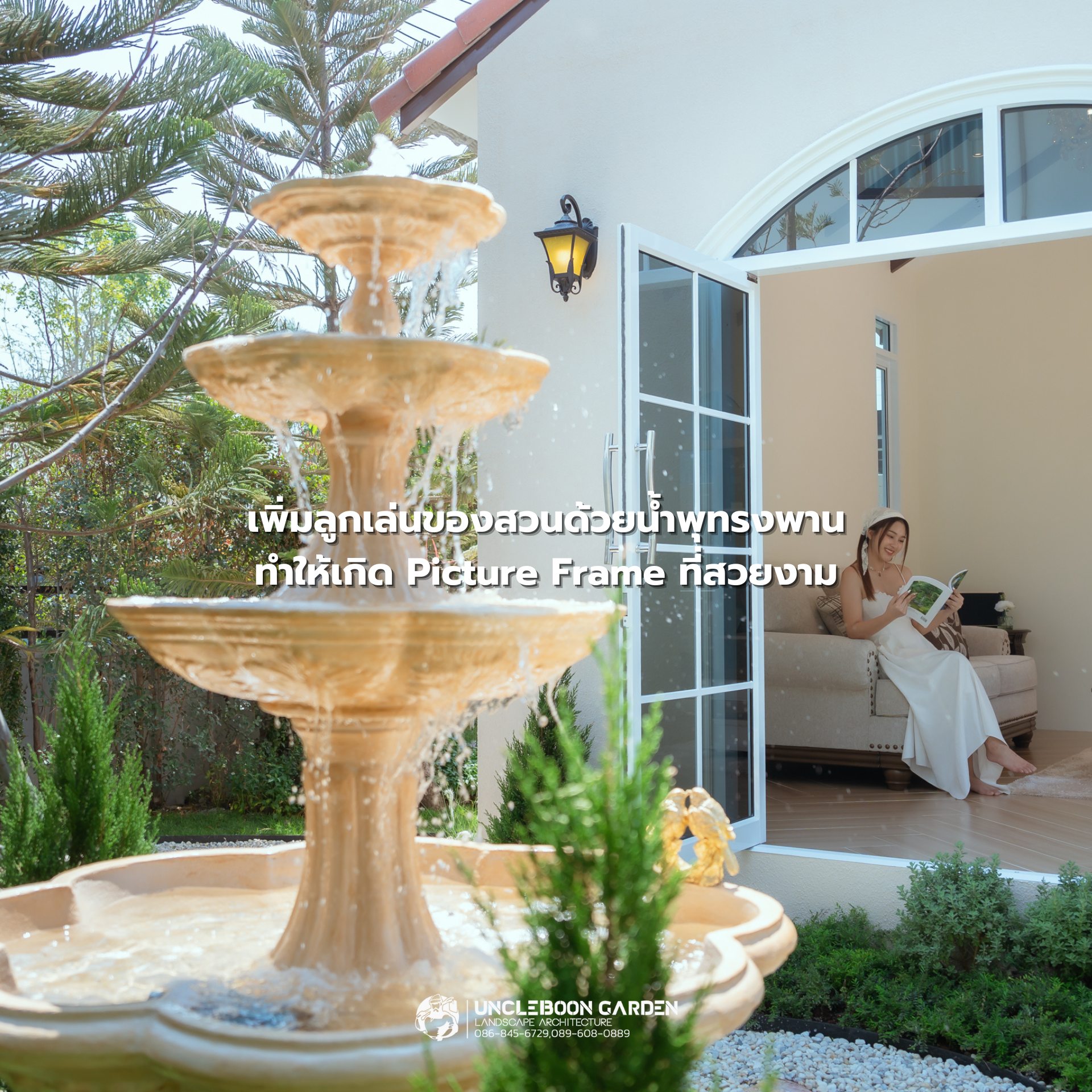 เพิ่มลูกเล่นของสวนด้วยการจัดวางน้ำพุทรงพาน เพื่อเพิ่มจุดหมายตาของสวน เป็นอีกมุมมองหนึ่งที่มองออกมาจากห้องรับรอง ทำให้เกิด Picture Frame