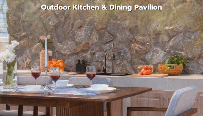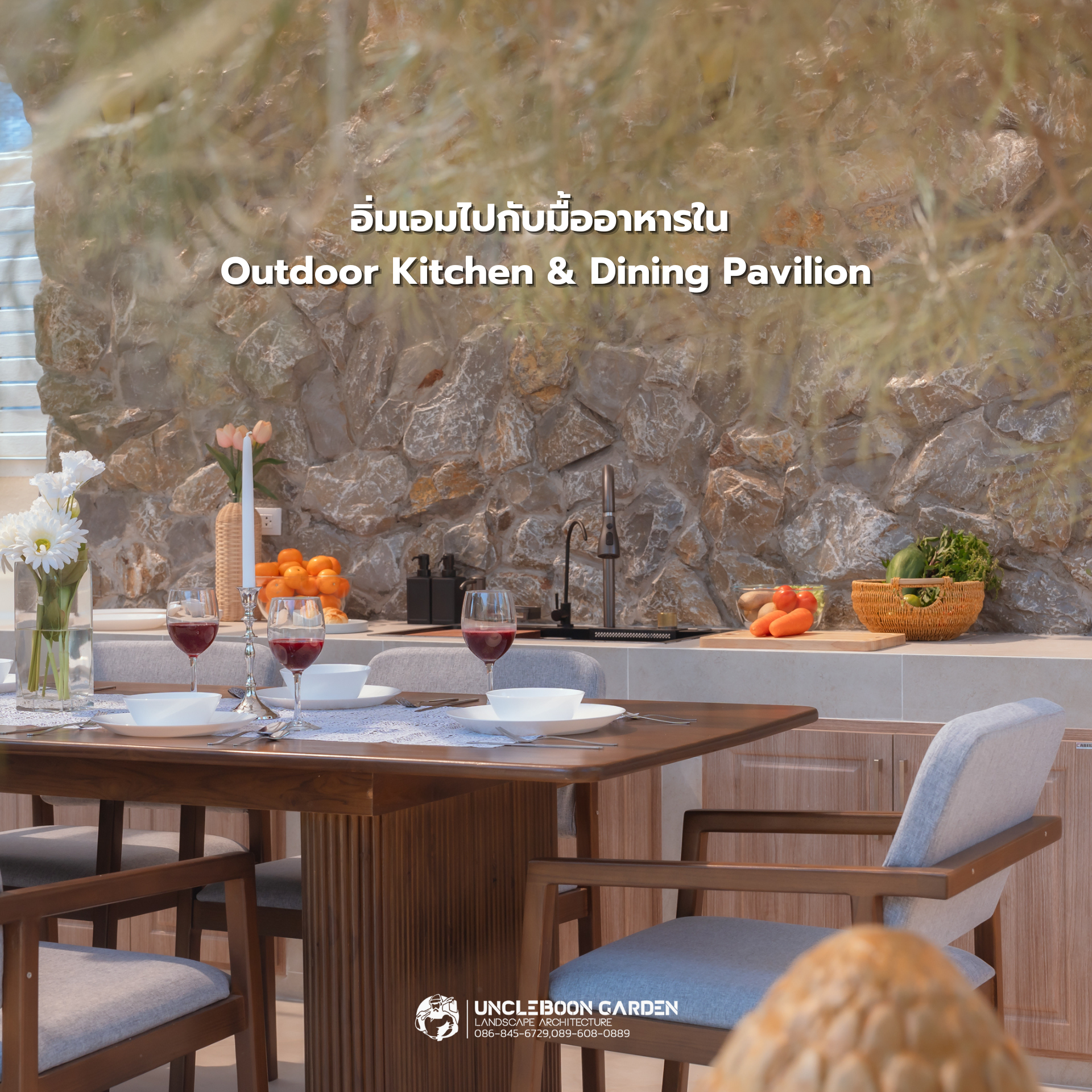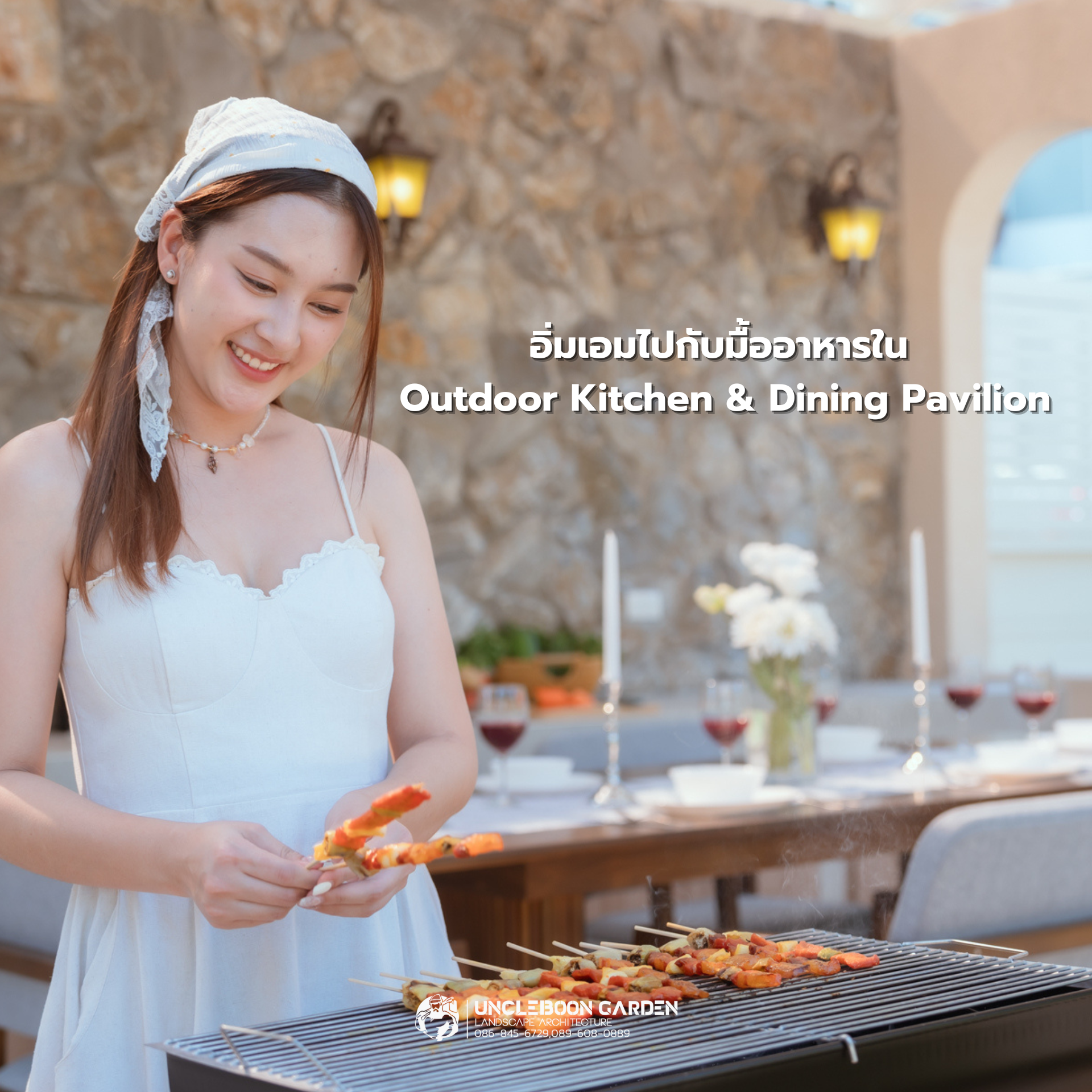 4. Outdoor Kitchen & Dining Pavilion – ครัวและพื้นที่รับประทานอาหารกลางแจ้ง